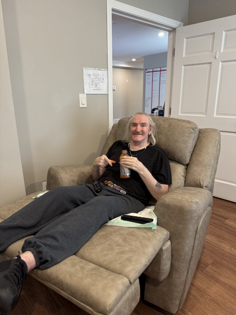 That changed in July 2025. Approved for the MFP-RS waiver program, Richard moved into his new home in Northborough. Today, Richard is rebuilding a life that feels more like his own. He enjoys the privacy of his own bedroom and the dignity of contributing to household tasks. And for the first time in years, he gets to plan what his meals will be – a right he loves and one others take for granted. Perhaps most meaningfully, Richard has found community. “We have fun,” he says of his housemates, with whom he plays games and watches sports. He also likes going out to shop for new clothes and items to personalize his bedroom. No longer needing to shout or pull a cord for help, Richard says of his new home, “It’s way better. I’m glad I’m here.”